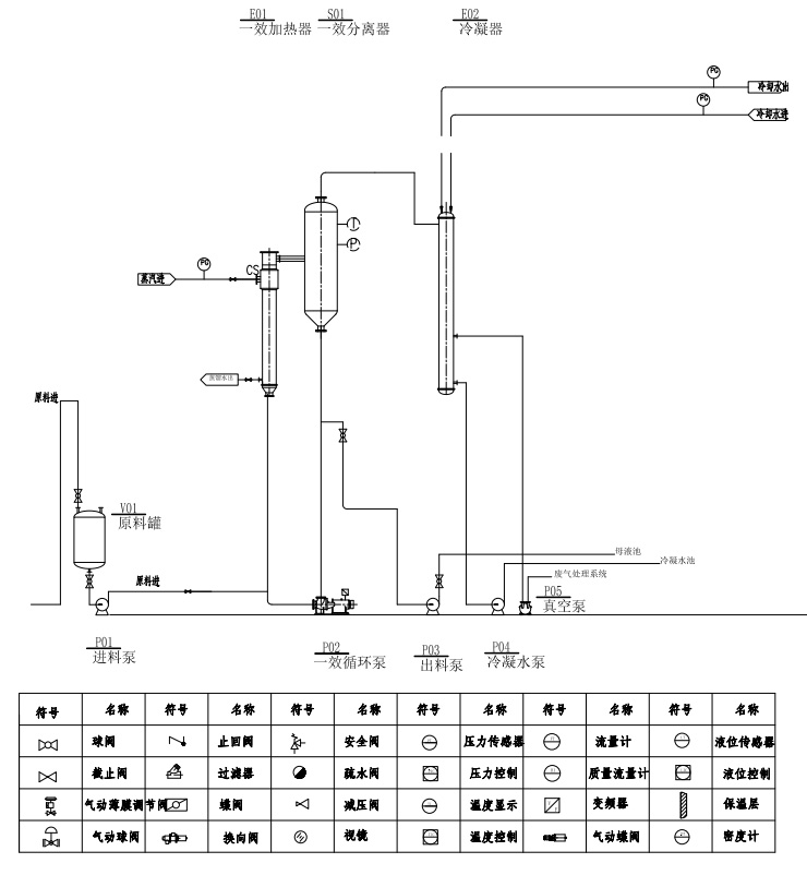 強制循環(huán)形式的蒸發(fā)結(jié)晶系統(tǒng)應(yīng)用廣泛,原料液與循環(huán)母液一起經(jīng)循環(huán)泵輸送至加熱器進(jìn)行加熱,而后進(jìn)入FC結(jié)晶器,部分由結(jié)晶器的錐形底部排出,未排走的母液經(jīng)循環(huán)管靠循環(huán)泵重新返回至結(jié)晶室,循環(huán)往復(fù),實現(xiàn)連續(xù)結(jié)晶過程。